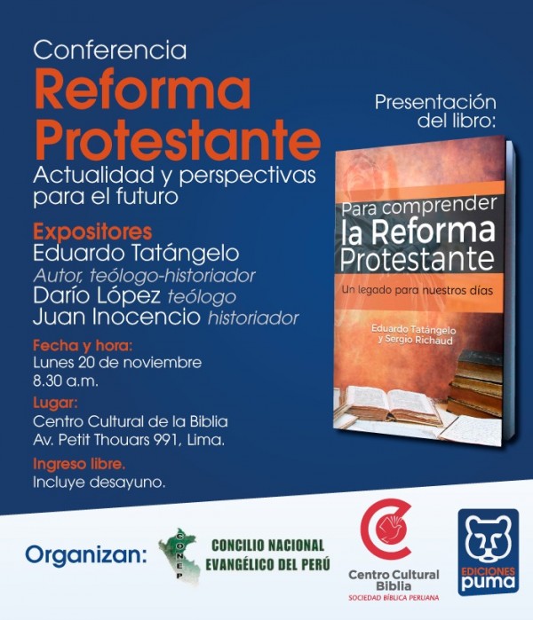 El próximo 20 de noviembre, Ediciones Puma, presentará en el Centro Cultural de la Biblia, en Perú, su nuevo libro Para comprender la Reforma Protestante, de los autores Eduardo Tatángelo y Sergio Richaud.