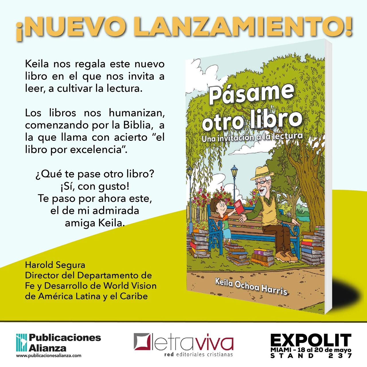 Leer, como lo dice Keila, es ver por los ojos de otros; es aumentar nuestras posibilidades de explorar otros tiempos, aprender de otras experiencias y formarnos para la vida plena: La vida crece en riqueza y vitalidad cuando estamos rodeados de libros y acariciados por sus palabras. Los buenos libros, y los libros buenos (la Biblia el primero), nos ayudan a crecer. – Harold Segura